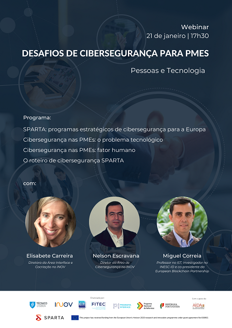 INOV in partnership with Instituto Superior Técnico and with the support of AIDA-Chamber of Commerce and Industry of the District of Aveiro is pleased to invite you to the webinar “Cybersecurity Challenges for SMEs” on January 21st, at 5:30 pm